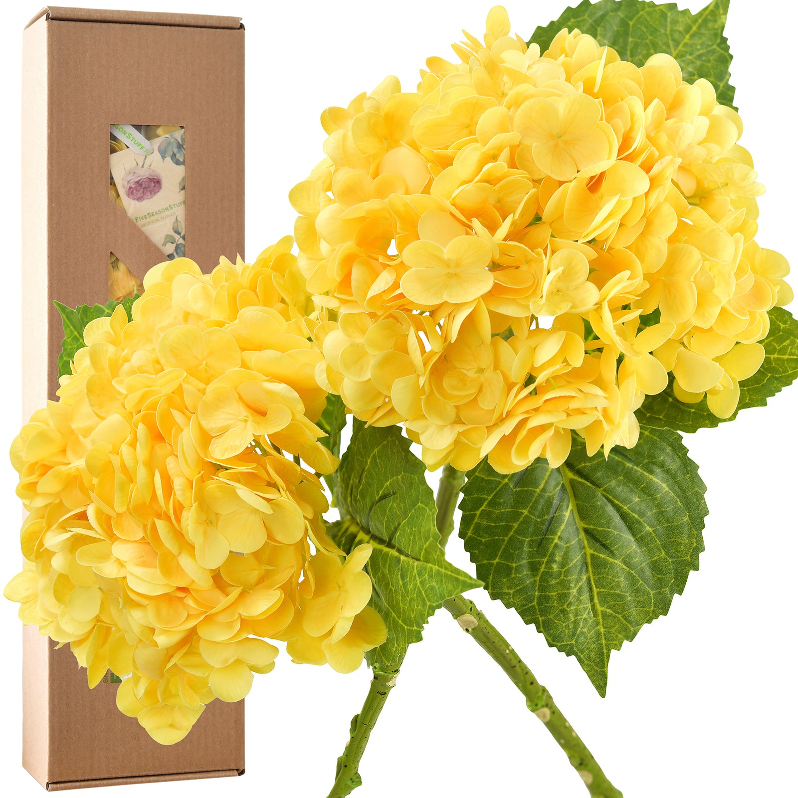 - Package Contents: 2 stems of artificial hydrangeas, sealed in FiveSeasonStuff branded packaging. Everything else in the photos is for reference only.