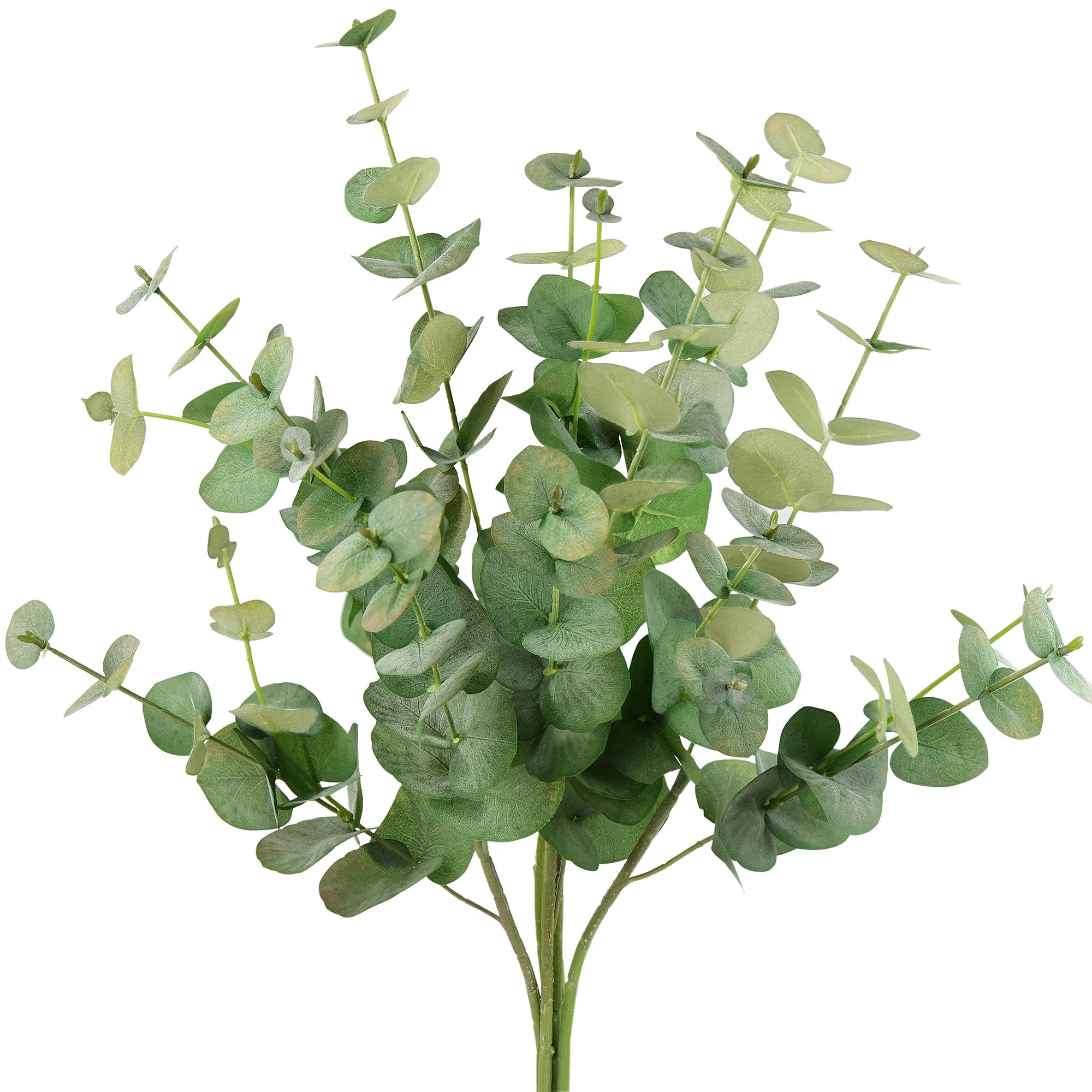 Slender silvery blue faux foliage leaves capture the essence of eucalyptus without the fuss. Use it to add height, texture and a splash of color to arrangements and centerpieces or create an everlasting eucalyptus wreath or garland.